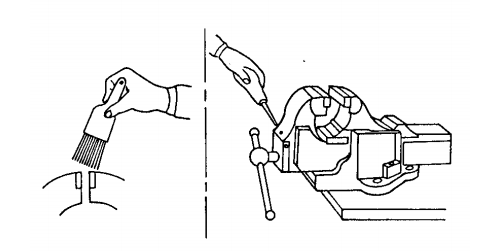 Làm sạch êtô bằng bàn chải.