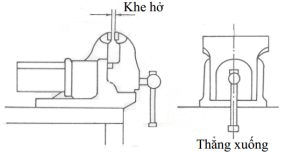 Cầm vật kẹp bằng tay trái rồi đặt vào giữa hai má kẹp sao cho vật kẹp nằm trên mặt phẳng nằm ngang và cao hơn má kẹp khoảng 10 mm.