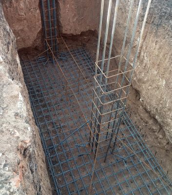 - Bước 5 sau khi đổ bê tông là làm đan thép giằng móng và đổ bê tông giằng